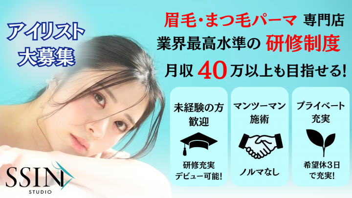 SSIN STUDIOでは主にお客様の接客・施術業務が中心となります。 初めにカウンセリングでお客様のお悩みなどお伺いし、 その後お客様のお悩みに合わせて丁寧に施術していきます!